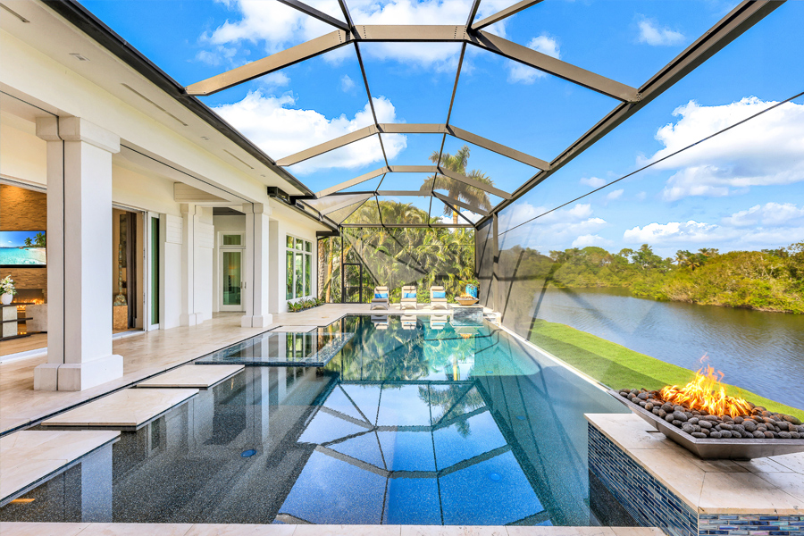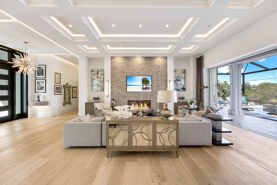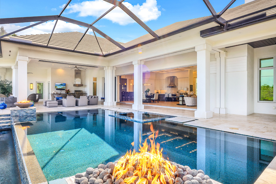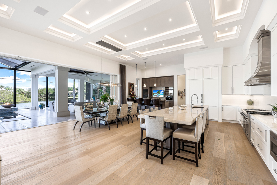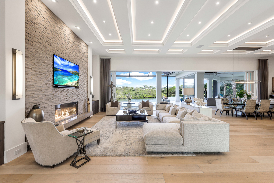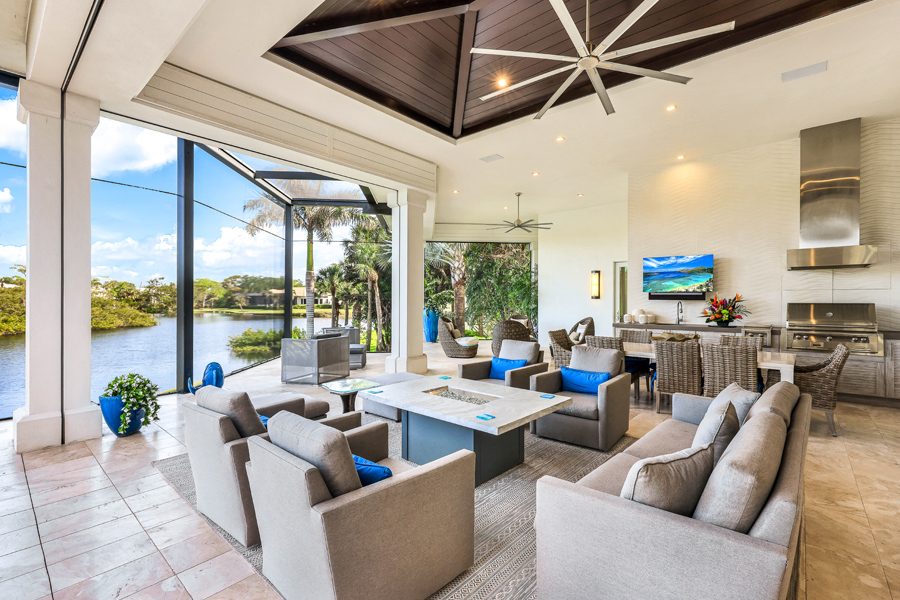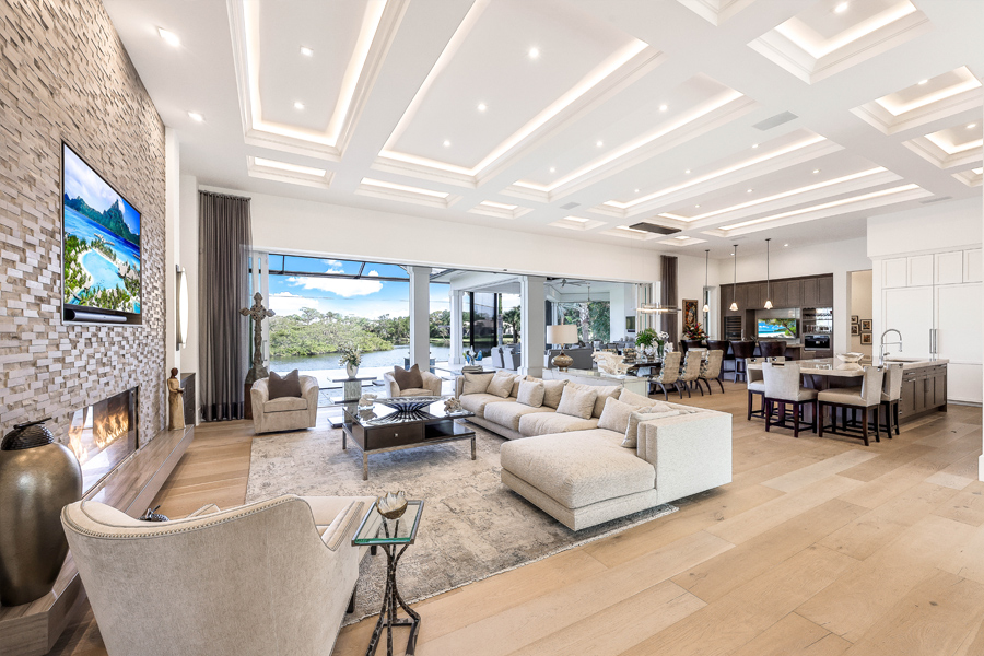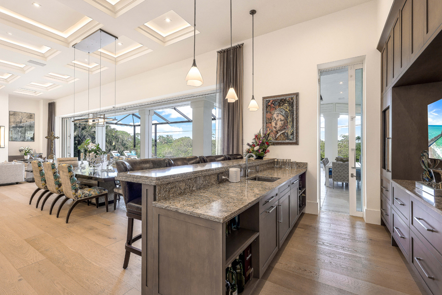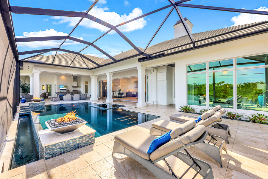 Fall madly in love with this 2017 custom built estate style home in Oak Knoll of Bonita Bay. This exceptional home is nestled on one of the community’s most coveted & private lots, offering unparalleled seclusion & tranquility. Surrounded by lush landscaping & natural beauty, this prime location ensures that residents enjoy both privacy & scenic views. This ONE OF A KIND STUNNING HOME offers impeccable high-end finishes, including wide board oak floors, custom ceiling treatments, & an expansive private long lake view. The indoor area is absolutely gorgeous with a large great room, a bar, & hurricane sliders that automatically open with the touch of a button. Enjoy seamless indoor-outdoor living w/a heated infinity edge pool, spa, fire bowls, a fire top table, marble pavers & so much more. The lanai boasts an outdoor kitchen w/an Alfresco grill, motor-driven retractable panels, & electronic storm shutters. The home features a Generac generator, 3 new central A/C systems (2022, 2023, 2024), Alini water filtration system, AAMI central alarm, Sonos sound system, & Lutron lighting. All doors &windows are hurricane-resistant providing protection & peace of mind! The chef’s kitchen located in the great room is equipped w/Thermador appliances, a Subzero refrigerator/freezer, & Cristallo countertops. A separate bar area boasts a Subzero wine cooler, a Miele built-in coffeemaker, & a Thermador dishwasher. The spacious living room includes a feature wall w/a stunning custom fireplace, floating ceilings, & designer lighting. The primary suite offers a large sitting area w/lake views, 2 custom walk-in closets, motorized window shades, & a luxurious bath w/marble countertops & a HUGE walk in shower. Three guest bedroom suites accommodate king-size beds, each with its own beautifully designed bathroom. The den features custom cabinetry, motorized shades, & barn doors. 3 car garages include one 2-car and one single-car, both w/Mitsubishi A/C units & custom cabinetry. If you desire a newer, ultra modern, yet cozy home, a PRIVATE lot, TRUE indoor/outdoor living, & tons of space for all in the desirable community of Bonita Bay, look no further! Experience unparalleled elegance & comfort in this extraordinary residence! Bonita Bay offers an array of exceptional amenities, including a private beach club, kayaking, canoeing, pickleball, tennis, & multiple community parks. Explore over 12 miles of walking & biking paths, or take advantage of the full-service marina & restaurant. Golf enthusiasts will appreciate the FIVE on-site courses, complemented by several dining options, a state-of-the-art fitness center, & more–all available with club membership (addl fees apply). A short drive from world-class dining, shopping, beaches, & nature preserves, you’ll also enjoy easy access to the burgeoning downtown Bonita Springs & downtown Naples. RSW Intl Airport is conveniently nearby! Properties this gorgeous on such fine lots are RARELY available in Bonita Bay!