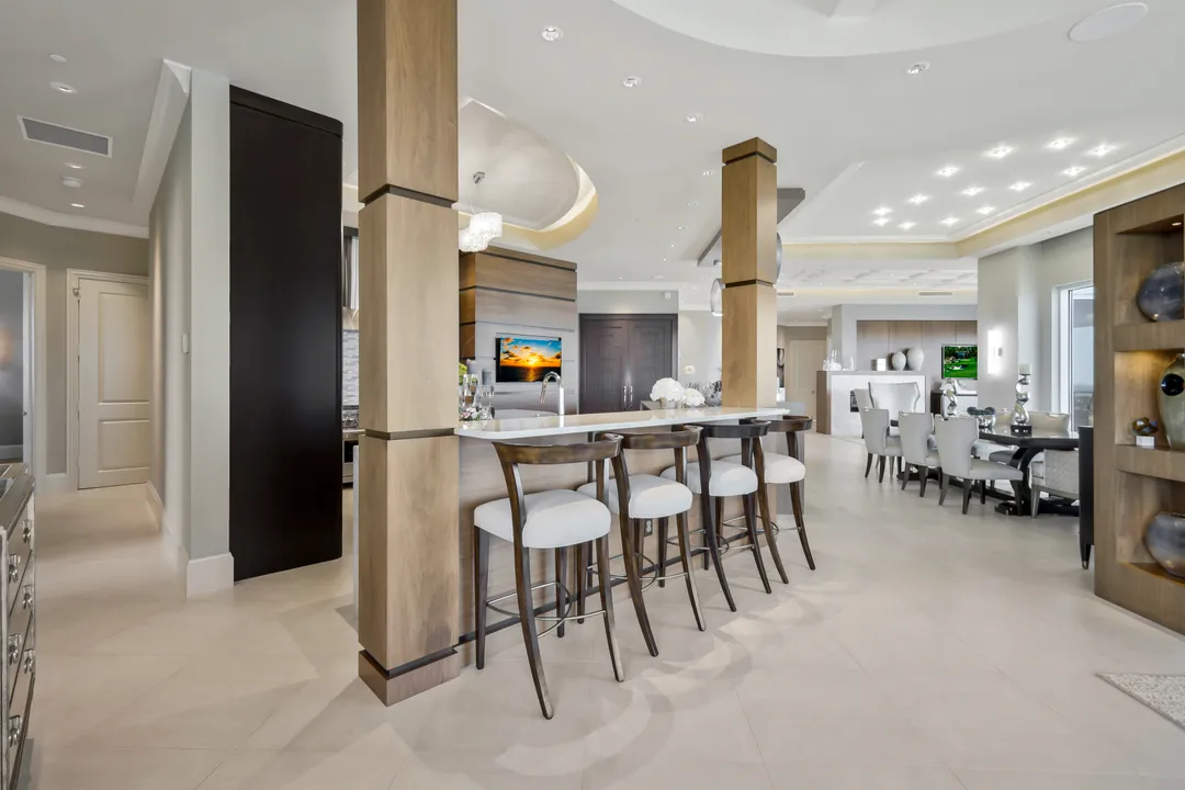 One of the most unique and stunning homes in all of Bonita Bay! ABSOLUTELY GORGEOUS with an esteemed PRIVATE TWO car garage – overlooking the Estero Bay and Gulf of Mexico! This home is pure sophistication and luxury! Located in the desirable Tavira high rise building, “move right in” to this exquisite home in the sky. This home’s talented designer/owner lovingly designed the space – a true masterpiece! No expense was spared with the beautifully designed interior – from the ceiling details to the flooring to the state of the art kitchen. The dual secure coded elevators open to a private foyer leading into an elegant open-concept living space adorned with high-end exquisite finishes, a fireplace, and multiple balconies. Additional features include stunning kitchen cabinets, quartz counter-tops, a custom bar area, GORGEOUS lighting, VOLUME ceilings with extra height, a stunning primary suite, split bedrooms, several outdoor spaces and so much more. Entertain friends & family in this elegant (yet comfortable) home. This home is meant to be enjoyed – a true spiritual retreat! Tavira is one of Bonita Bay’s most esteemed high rise buildings. Amenities include a beach park, nature trails, a marina and optional club membership including golf, tennis, several restaurants and a fitness center. All this and a PRIME location within Southwest Florida, close to world renowned beaches, restaurants, the burgeoning downtown Bonita Springs and the Southwest Florida Airport! Do not hesitate as homes in Bonita Bay like this one RARELY become available! Be sure to view the accompanying video of this home!